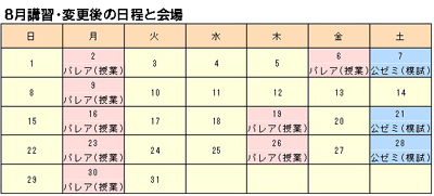 熊本校で実施される8月講習(夏期講習)の会場と日程の一部を変更しました。